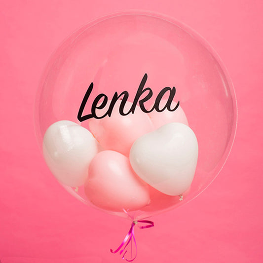 Deco Bubble - Balon z helem + małe balonowe serduszka w środku, dodaj napis
