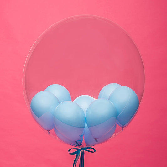 Deco Bubble - Balon z helem + niebieskie baloniki w środku, Qualatex, dodaj napis