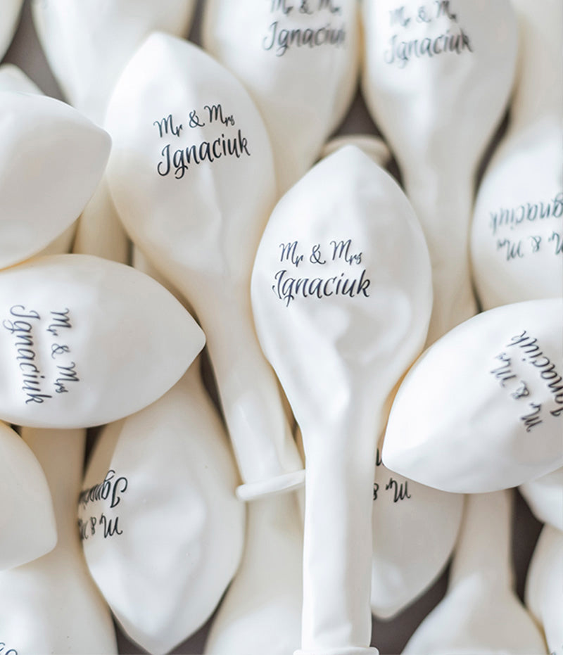 Biały Nadruk na Czarnych Balonach Lateksowych