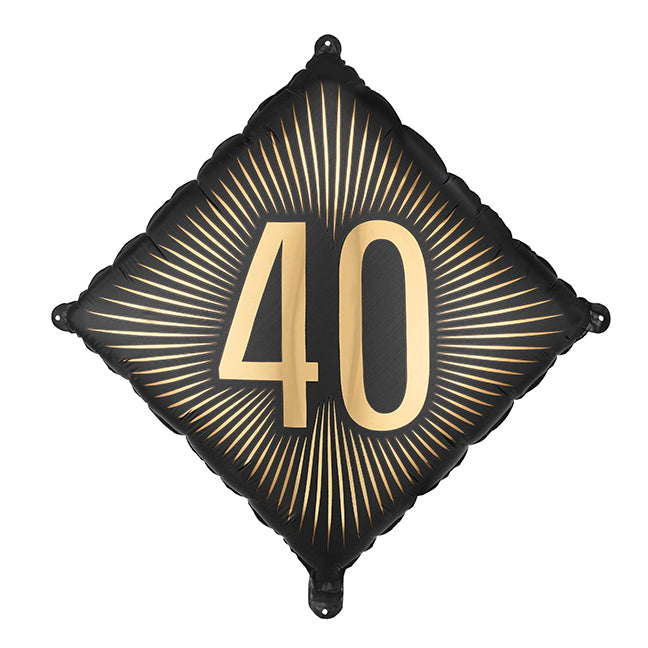 Balon foliowy z helem, czarny, PartyDeco, 46cm - Birthday 40th