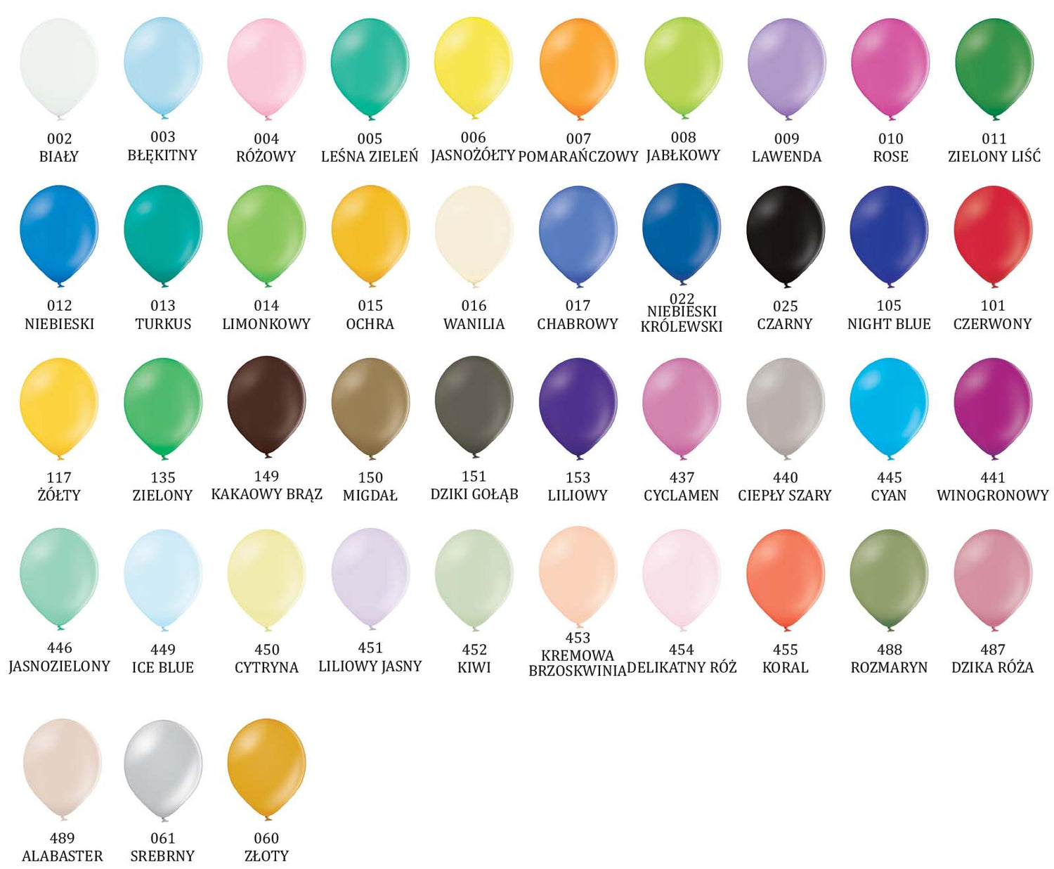 Do wyboru aż 43 kolory balonów na których możemy wykonać nadruk!