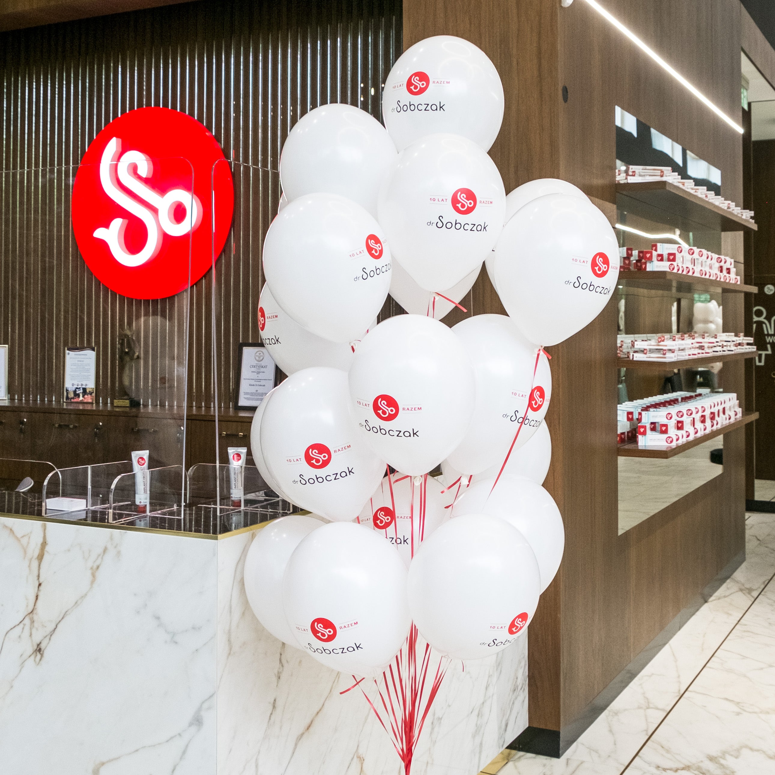Zobacz, jak prezentowały się balony z nadrukowanym logo.