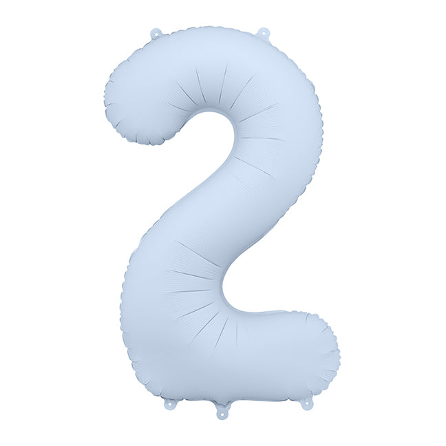 Balon foliowy w kształcie cyfry 2 napełniony helem wykonany z mocnej, wytrzymałej matowej folii w kolorze jasnym niebieskim. Balon ma wielkość około 86 cm. Cena za sztukę z helem (balon latający) i wstążką. Balon jest matowy.