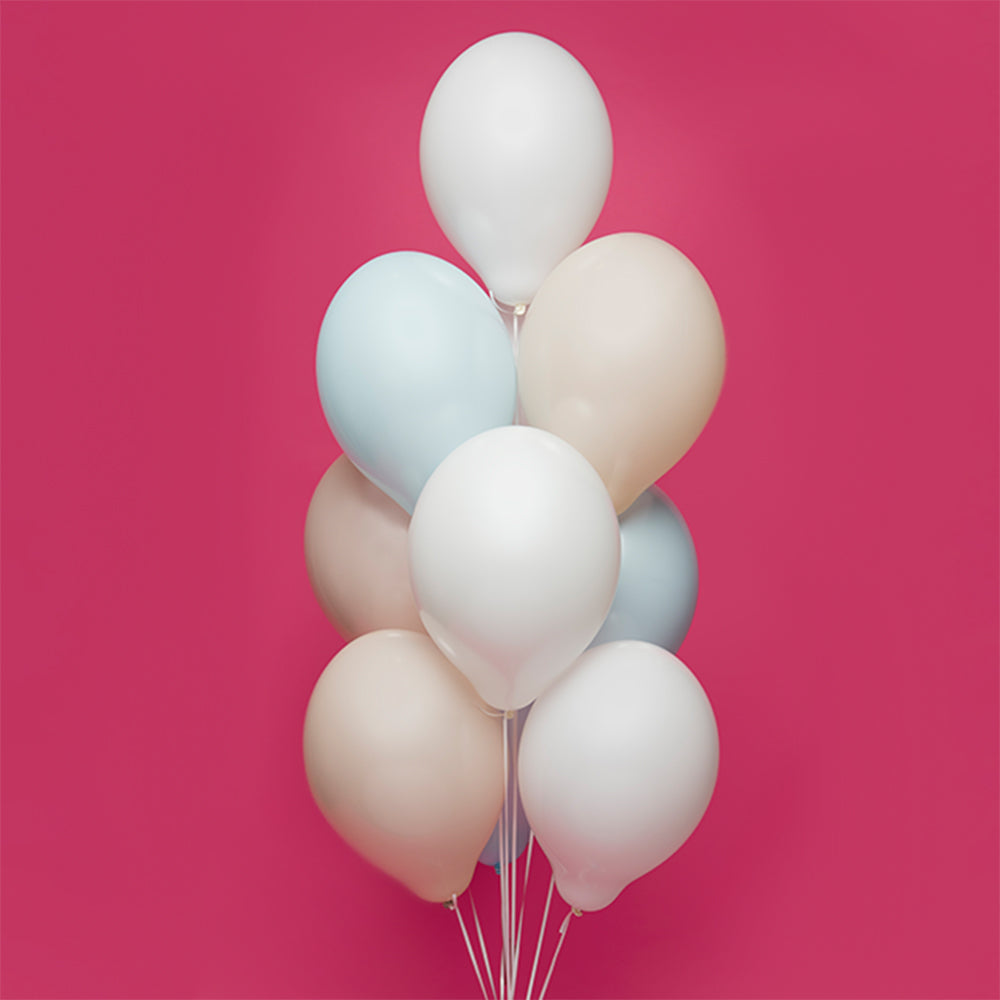 Bukiet balonów z helem, 10 sztuk, beżowo niebieski - Błękitne Niebo